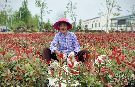 圖為周邊村民就近在苗圃基地務(wù)工現(xiàn)場(chǎng)。記者胡小軍攝