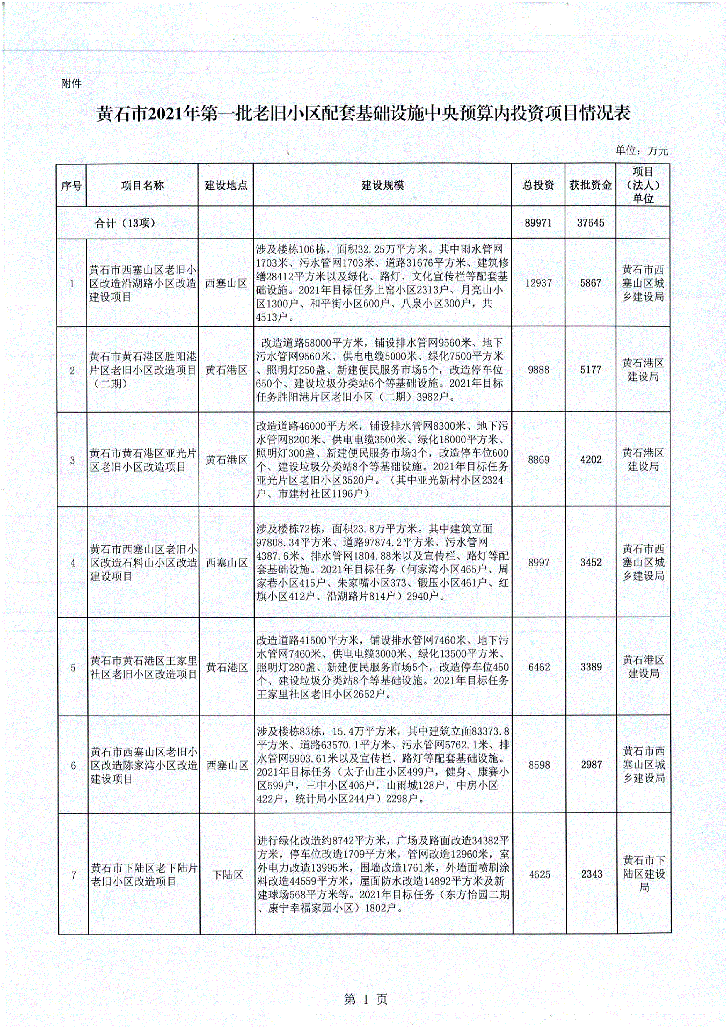 附件:黃石市2021年第一批老舊小區(qū)配套基礎(chǔ)設(shè)施中央預(yù)算內(nèi)投資項(xiàng)目情況表