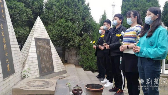 鄂州市稅務(wù)局稽查局青年理論學(xué)習(xí)小組給“抗洪救災(zāi)英雄”吉宏善烈士掃墓。通訊員 供圖