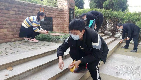 鄂州市稅務(wù)局稽查局青年理論學(xué)習(xí)小組給“黨和人民的忠誠衛(wèi)士”吳明掃墓。通訊員供圖