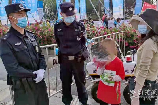 5月5日7時30分,正在鄂州半程馬拉松比賽起點附近巡防的民警高斌、王騫、毛靜瀾,發(fā)現(xiàn)一名小女孩正在焦急地四處張望,一旁還有一名工作人員正在和小女孩交流著什么。
