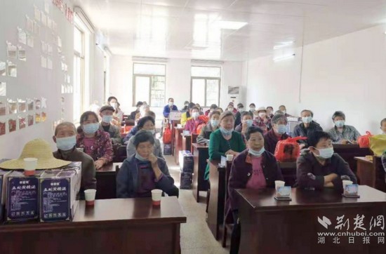組織現(xiàn)場(chǎng)調(diào)解處理會(huì),退還42名村民購(gòu)買“五蛇黃精酒”的錢款。通訊員 供圖