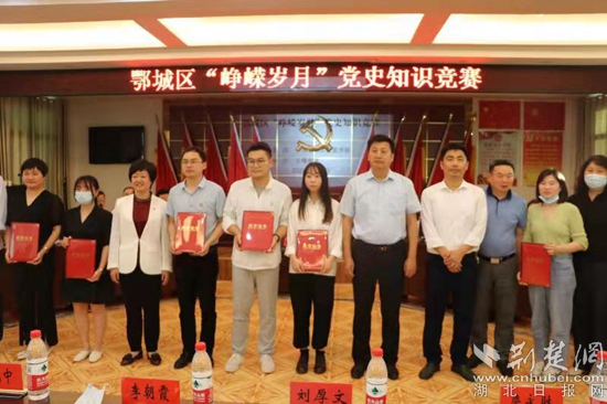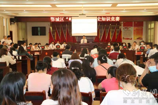 鄂城區(qū)“崢嶸歲月”黨史知識競賽現(xiàn)場。通訊員 供圖