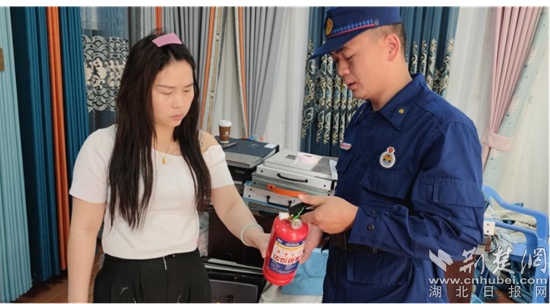 對(duì)群眾傳授處置初起火災(zāi)的方法。(通訊員供圖)