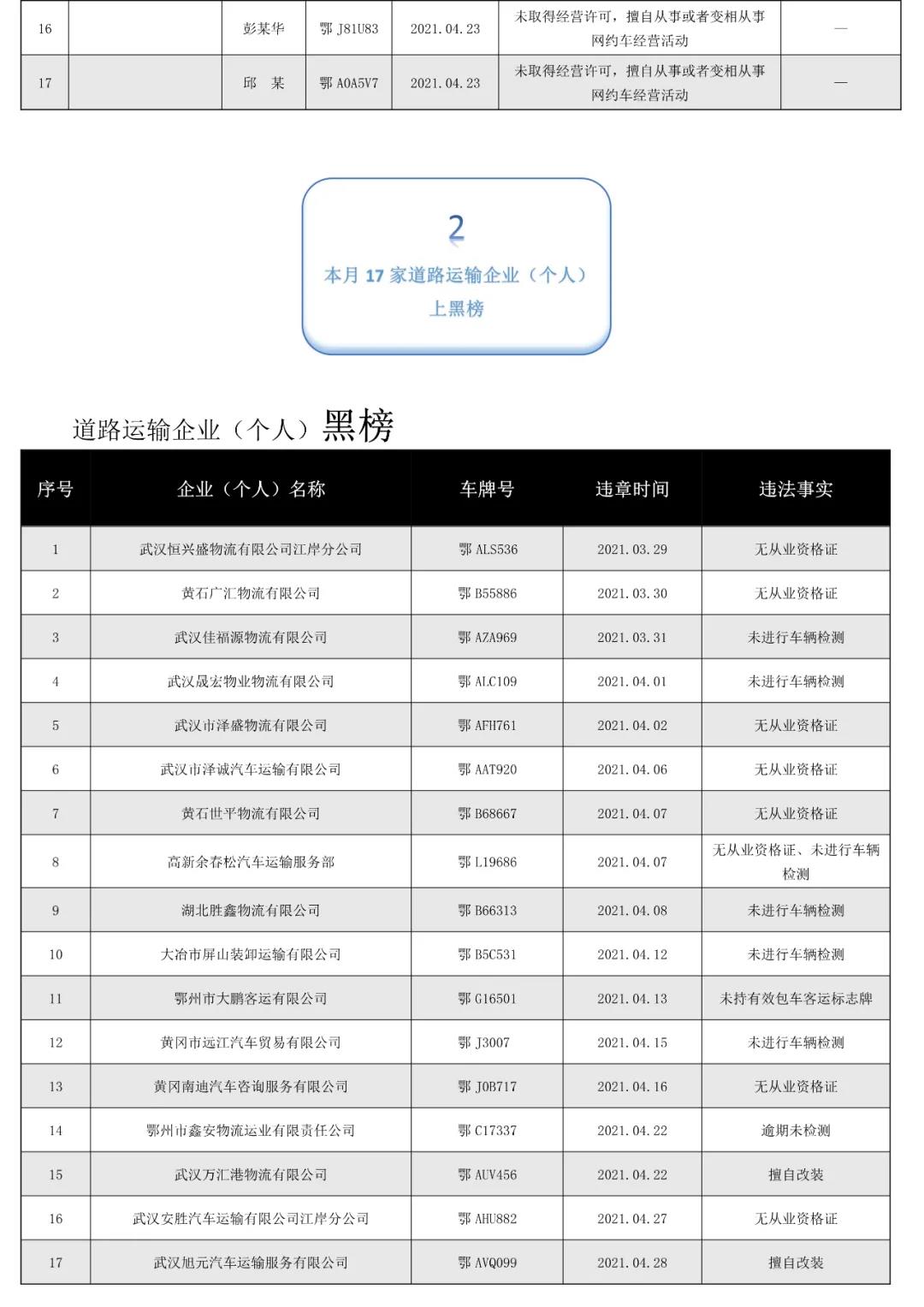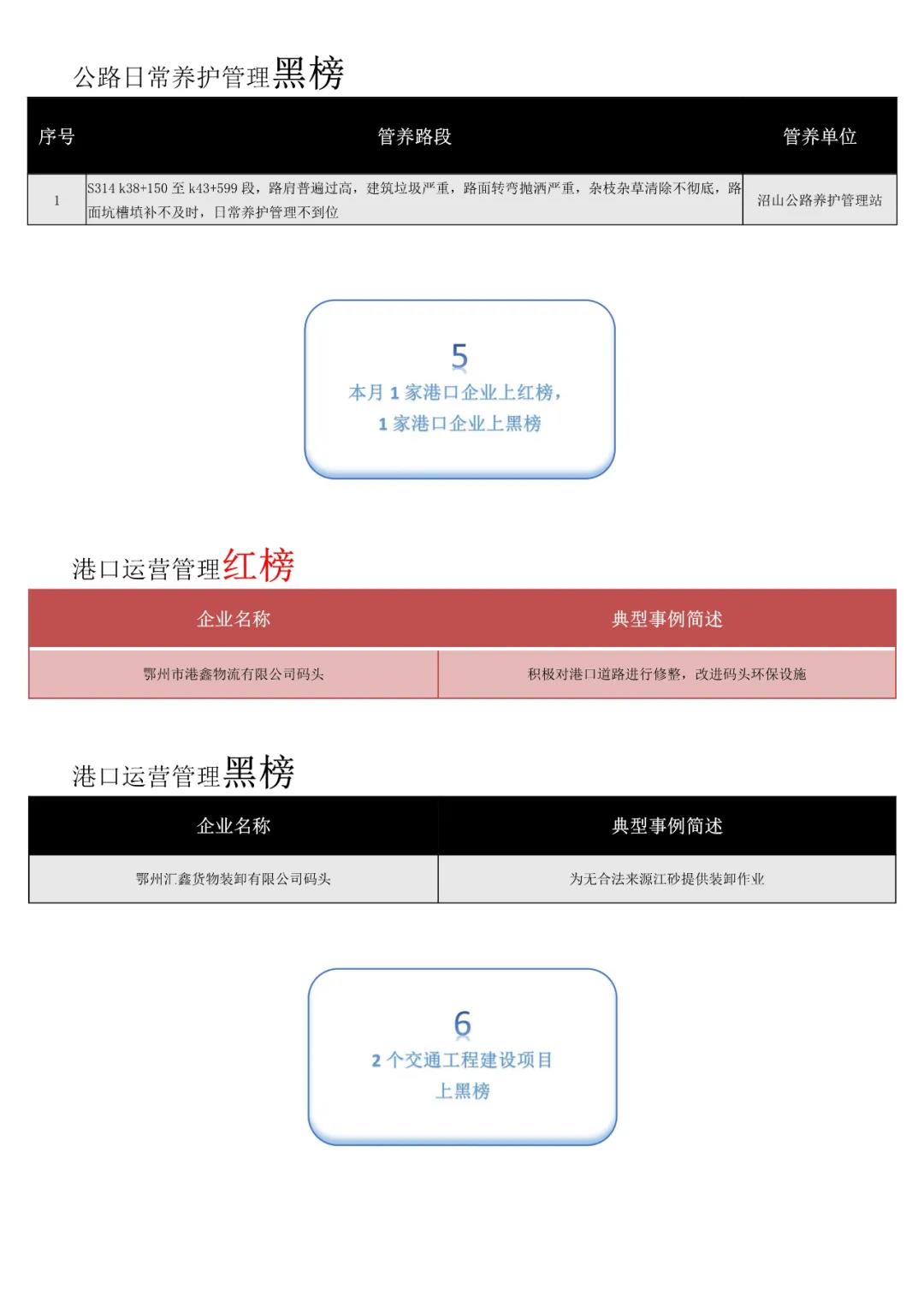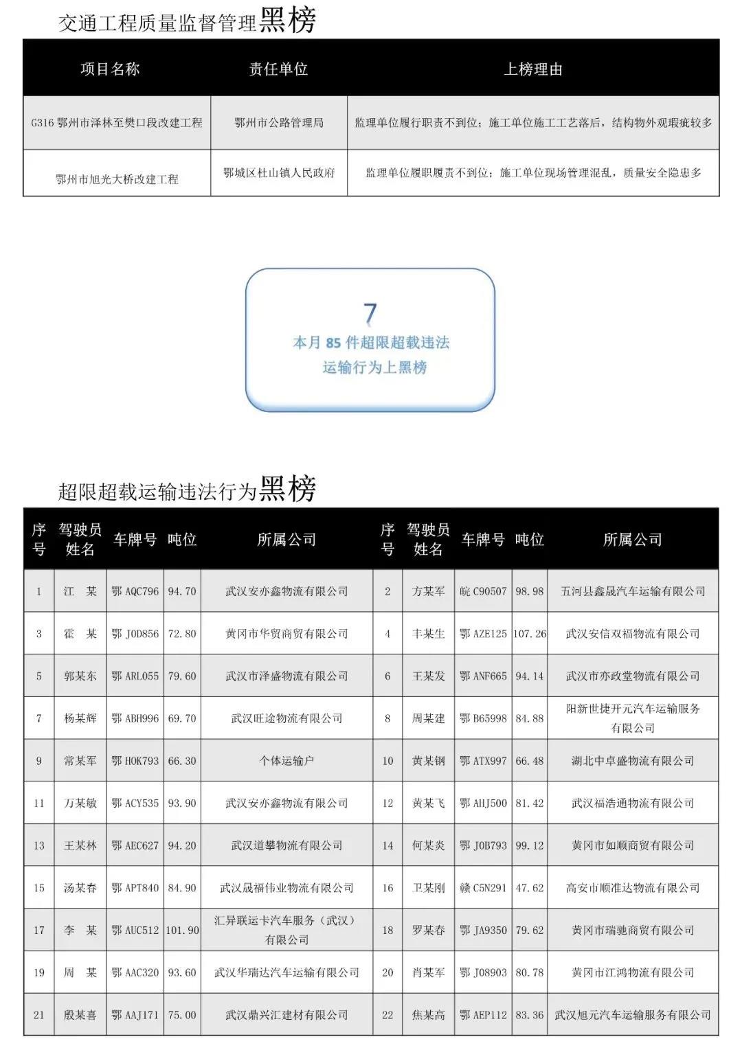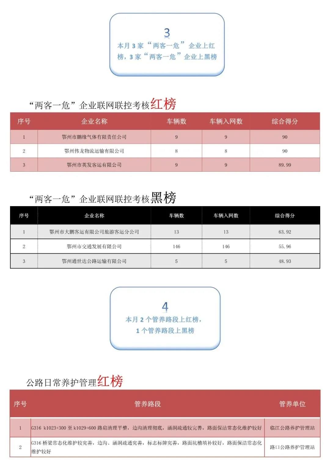 鄂州市交通運輸局法規(guī)科負責人李玉娟表示,紅黑榜除了每月在該局官網(wǎng)官微公布,也會在每個行業(yè)企業(yè)群定期推送。同時,該局也將定期對黑榜企業(yè)進行走訪,對連續(xù)上黑榜的企業(yè)進行約談下達整改通知;對于行政處分次數(shù)較多的企業(yè)主動上門,幫助其整改,進行信用修復。
