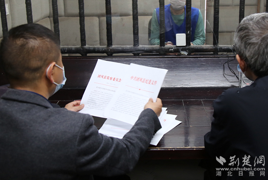 團(tuán)風(fēng)縣紀(jì)委監(jiān)委審理室負(fù)責(zé)人到看守所向受處分人員宣布黨紀(jì)政務(wù)處分決定。通訊員供圖