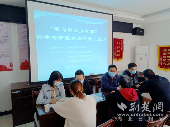 協(xié)調(diào)法律服務(wù)人員到黃石港區(qū)江北工業(yè)園為民營(yíng)企業(yè)開展“法治體檢”。通訊員供圖