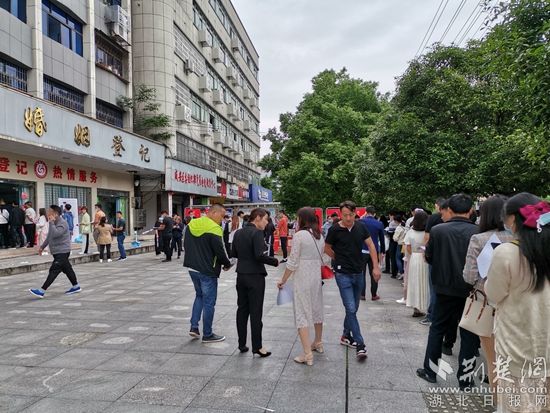 荊楚網(wǎng)(湖北日報網(wǎng))(記者田城 通訊員胡劍芳 張燕 )5月20日,咸寧市咸安區(qū)迎來了“領(lǐng)證”小高峰,不少新人扎堆在這一天辦理結(jié)婚證。