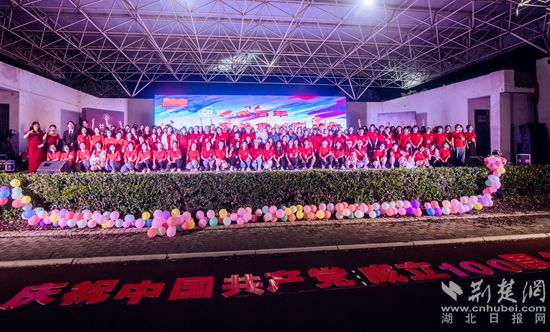 黃岡師范學(xué)院師生共慶中國共產(chǎn)黨成立100周年活動(dòng)現(xiàn)場(chǎng)。通訊員供圖