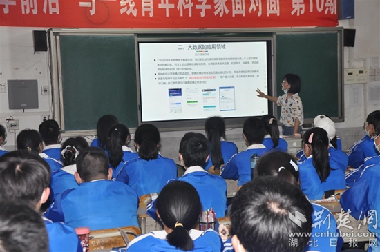 圖為中科院武漢文獻(xiàn)情報中心副研究員劉佳圍繞“無處不在的大數(shù)據(jù)”主題為鄂州師生開展科學(xué)普及。通訊員供圖