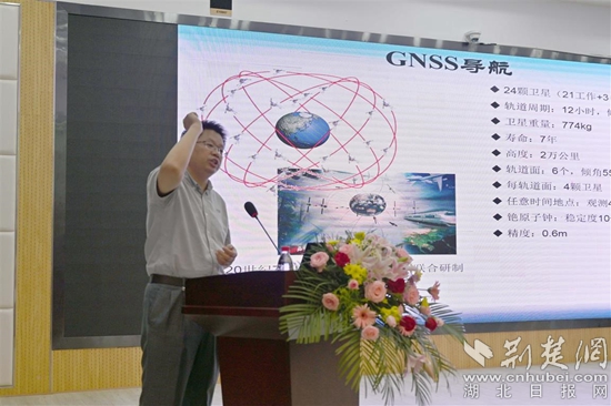 圖為中科院研究員閆昊明圍繞“無處不在的導(dǎo)航定位”主題給鄂州師生作科普報告。通訊員供圖