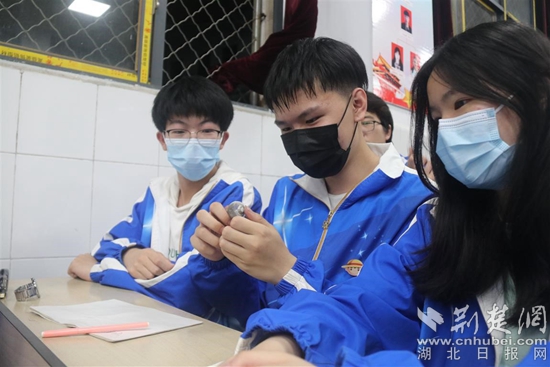圖為武漢理工大學(xué)副教授朱曉萌圍繞“金屬3D打印”主題在鄂州二中與學(xué)生一起開展現(xiàn)場體驗活動。通訊員供圖