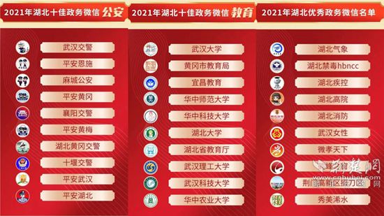 2021年湖北十佳政務(wù)微信獲獎名單,黃岡6家新媒體斬獲殊榮。網(wǎng)絡(luò)截圖