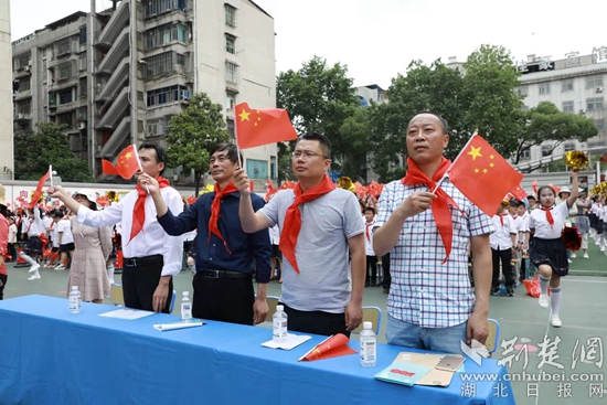 圖為學(xué)校領(lǐng)導(dǎo)和同學(xué)們一起互動(dòng)。(通訊員供圖)