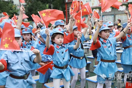 圖為小演員們手舉國(guó)旗,跟大家一起互動(dòng)。(通訊員供圖)