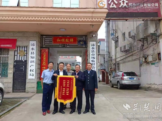 湖北蓮花電力母線制造有限公司法定代表人蘭國(guó)林將錦旗送到浠水縣市場(chǎng)監(jiān)管局。通訊員 供圖