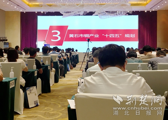 黃石市經(jīng)信局局長(zhǎng)王斌發(fā)布《黃石市銅產(chǎn)業(yè)“十四五”發(fā)展規(guī)劃》。記者 呂鑒蕾 攝