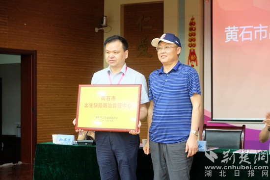 圖為省衛(wèi)健委二級調(diào)研員王勁松為黃石市婦幼保健院授予“黃石市出生缺陷防治管理中心”匾牌。 (通訊員供圖)