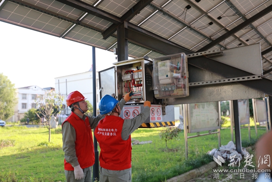 在鄂州市汀祖鎮(zhèn)的賽維光伏發(fā)電站里,兩名供電職工正在對(duì)接入電網(wǎng)的線路進(jìn)行檢查?!案兄x供電人員傾心幫助,他們每個(gè)月都會(huì)過來檢查設(shè)備運(yùn)行情況,在發(fā)電并網(wǎng)、電費(fèi)回收等方面提供了很多幫助。”賽維光伏發(fā)電站的駐守人員介紹。