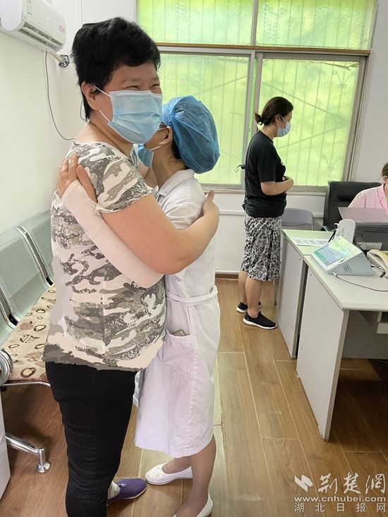 圖為張女士接種后激動(dòng)地與醫(yī)務(wù)人員擁抱致謝。(通訊員供圖)