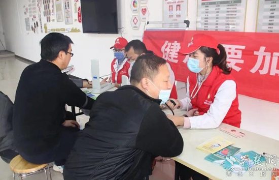 麻城市三醫(yī)院黨員先鋒隊為社區(qū)居民開展健康義診志愿服務活動。通訊員 供圖