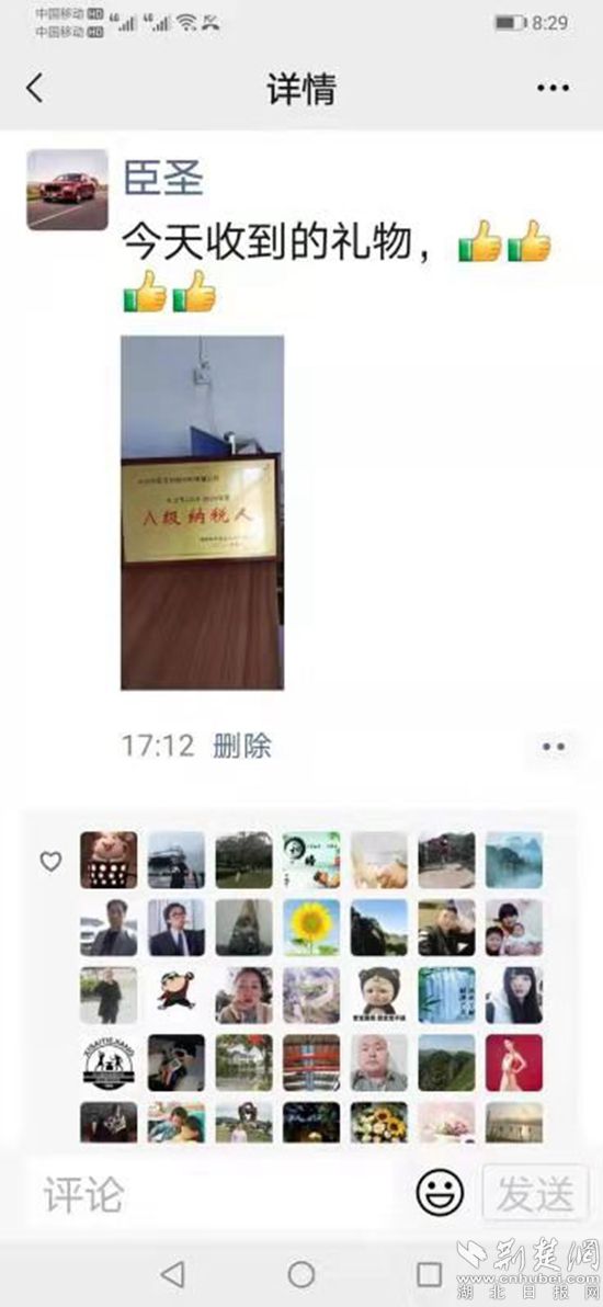 大冶市臣圣耐磨材料有限公司法人曹裕緯高興地拍了照片,迫不及待與朋友分享這份喜悅,獲得了親朋好友的紛紛點贊。