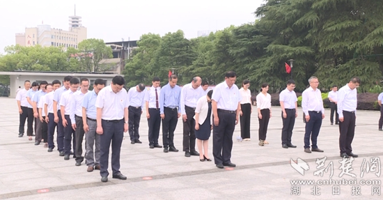 江蘇援黃醫(yī)療隊(duì)臨時(shí)黨支部、鄂東醫(yī)療集團(tuán)機(jī)關(guān)黨支部黨員莊嚴(yán)肅立、鞠躬,重溫入黨誓詞,瞻仰了革命烈士紀(jì)念館、彭德懷雕像、九烈士墓,聆聽英雄兒女前赴后繼投身革命,為民族獨(dú)立、人民自由解放英勇奮斗的動(dòng)人故事,了解陽新作為全國著名的烈士縣彪炳千秋的革命斗爭(zhēng)史。