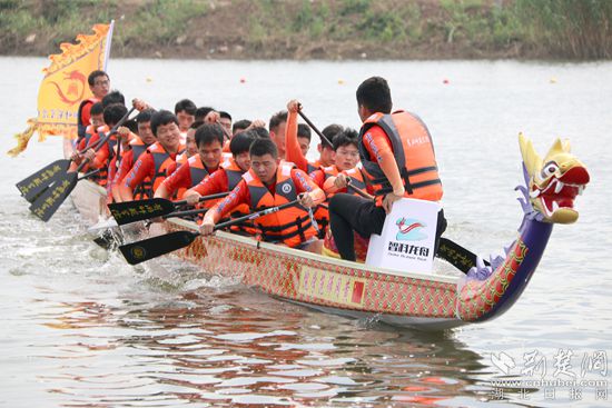 隨著發(fā)令槍響,黃岡高校龍舟邀請賽正式開始。黃岡師范學院、黃岡職業(yè)技術(shù)學院兩支龍舟隊先后進行500米22人男子龍舟競渡賽、500米12人女子龍舟爭霸賽、500米5人男子龍舟速度賽、500米22人混合龍舟表演賽。