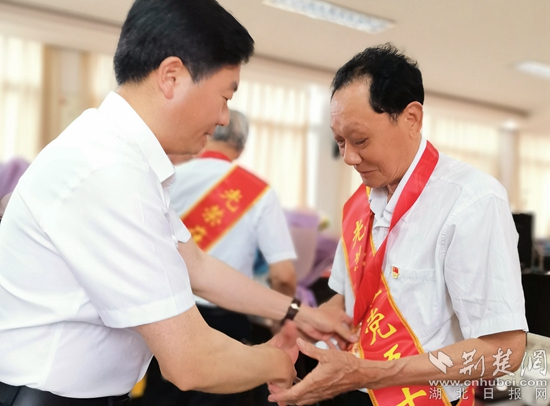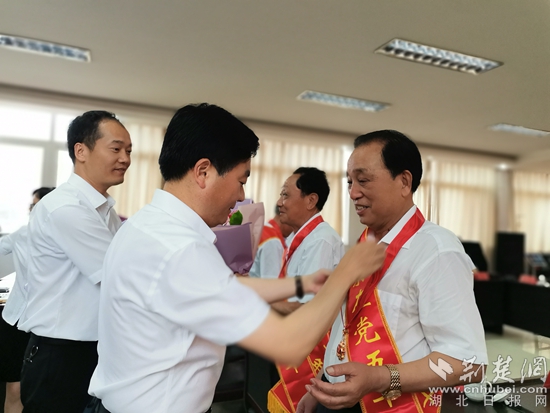 咸安區(qū)休干所“光榮在黨50年”紀(jì)念章頒發(fā)儀式。(通訊員供圖)
