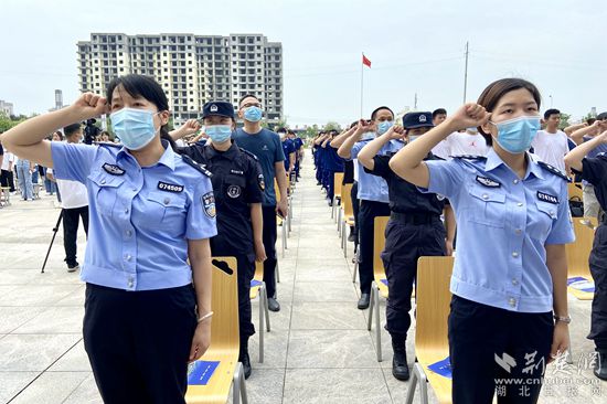 現(xiàn)場人員共同宣誓遠(yuǎn)離毒品。記者 胡小軍攝