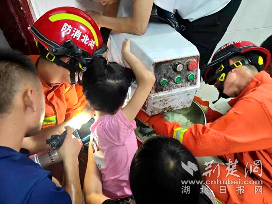 荊楚網(湖北日報網)訊(通訊員黃消宣)6月18日,陽新縣興國鎮(zhèn)一名八歲女孩因好奇調皮,左手被卡在和面機的兩個滾軸中間動彈不得,所幸消防救援及時趕到,15分鐘左右助其成功脫困。
