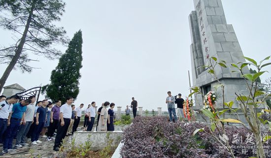 在杉木鄉(xiāng)藕塘村鄧雅聲烈士陵園,全體人員敬獻(xiàn)花籃,集體默哀,緬懷英烈。鄧雅聲是黃梅農(nóng)民運動領(lǐng)導(dǎo)人之一。1928年春,時任京漢鐵路特委書記的鄧雅聲在漢口不幸被捕。面對敵人的威逼利誘和嚴(yán)刑拷打,他以《絕命詞四章》回敬:“飲彈從容向天笑,長留浩氣在人間”。