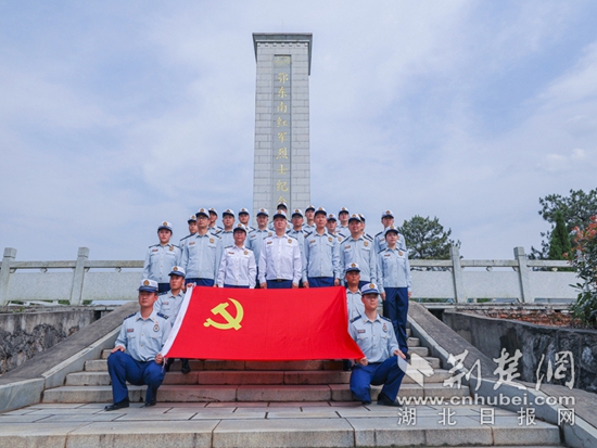 鄂東南紅軍烈士紀(jì)念碑前集體合影留念。通訊員 供圖