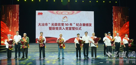 荊楚網(wǎng)(湖北日報網(wǎng))訊( 通訊員衛(wèi)學平)6月21日,大冶市舉行“光榮在黨50年”紀念章頒發(fā)儀式,向24名老黨員代表頒發(fā)“光榮在黨50年”紀念章,傳遞黨的關(guān)心和愛護。