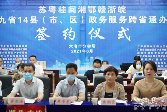 大冶市政務(wù)服務(wù)高頻事項(xiàng)“跨省通辦”網(wǎng)上簽約儀式。阮瓊攝