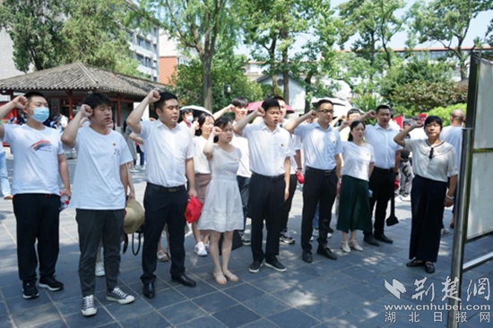 在武昌中央農(nóng)民運(yùn)動講習(xí)所,全體黨員干部面向黨旗莊嚴(yán)宣誓,隨后依次參觀農(nóng)講所教務(wù)處、大教室、宿舍、膳堂等舊址。一件件飽經(jīng)滄桑的歷史文物,一張張定格歷史的資料照片,再現(xiàn)了先驅(qū)們艱苦卓絕的奮斗歷程,大家重溫農(nóng)民運(yùn)動歷史,對早期共產(chǎn)黨人的革命探索和實(shí)踐有了更深的理解和認(rèn)識。