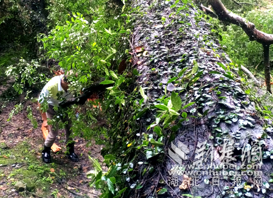 6月22日凌晨6時(shí)許,通山洪港鎮(zhèn)江源村5組一顆有600多年樹齡的古樹因大雨大風(fēng)被連篼刮倒了,沒(méi)有專家?guī)椭?,村民們感到束手無(wú)策。