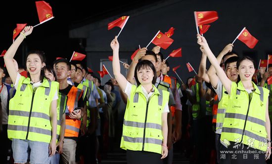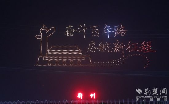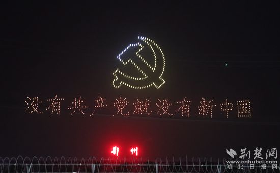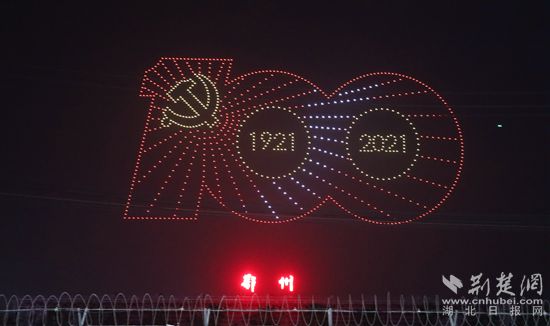 圍繞慶祝建黨百年和鄂州花湖機(jī)場(chǎng)兩大元素,900臺(tái)無人機(jī)編隊(duì)飛行表演,400余名鄂州花湖機(jī)場(chǎng)的建設(shè)者們高唱《沒有共產(chǎn)黨就沒有新中國(guó)》,共同慶祝中國(guó)共產(chǎn)黨成立100周年。
