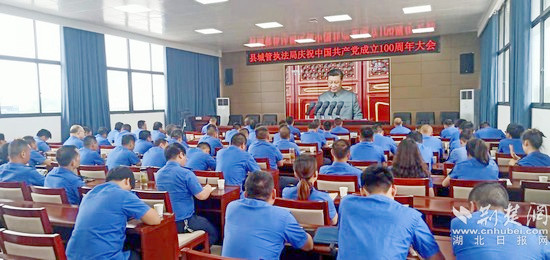 陽新縣城管執(zhí)法局干部集中收聽收看慶祝中國共產(chǎn)黨成立100周年大會。通訊員供圖