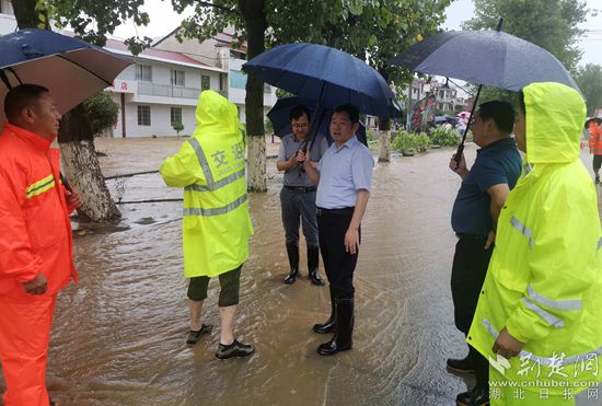 縣委書記鄭光文在省道201新屋咀段水毀現(xiàn)場指導(dǎo)道路搶修工作。通訊員 供圖
