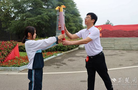 陳潭秋中學(xué)少先隊(duì)員們傳遞火炬。記者胡小軍 攝