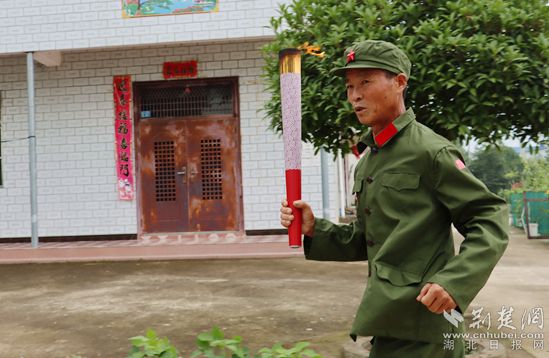 陳策樓鎮(zhèn)黨委書記楊平安在陳潭秋故居宣誓廣場(chǎng)接過(guò)火炬進(jìn)行傳遞。記者胡小軍 攝