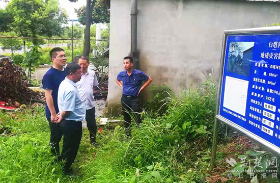 麻城市龍池橋街道紀工委干部到社區(qū)檢查地質災害點,督促排查風險隱患。通訊員 供圖