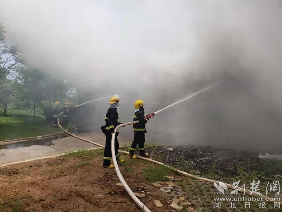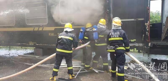 廢棄綠皮火車突然起火,鄂州消防緊急排除險情。(通訊員供圖)