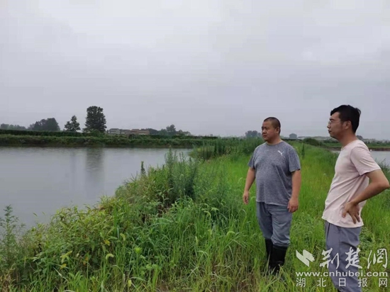 防汛人員密切關(guān)注萬方大塘水位情況。(通訊員供圖)
