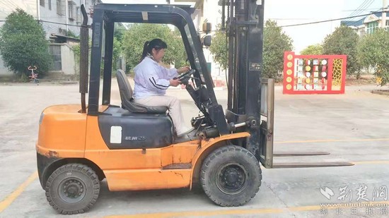 “叉車的整體結(jié)構(gòu)是怎么樣的”“叉車操作技巧解析”“叉車保養(yǎng)維護(hù)的基本知識和要求”……在郭垱村黨員群眾服務(wù)中心大樓后方,專門有一塊空地開辟出來給村民實操練習(xí)叉車技術(shù),老師黃軍號正指導(dǎo)學(xué)員操作練習(xí)。
