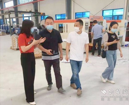 散花市場(chǎng)監(jiān)管所的黨員干部上門(mén)服務(wù)企業(yè)。通訊員 供圖