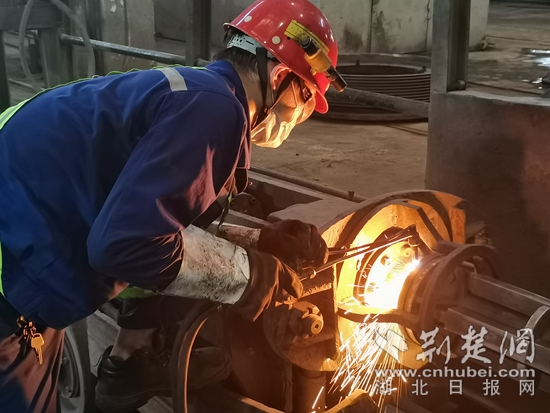 為了檢修保質(zhì)保量完成,他們?cè)?0℃高溫的車間里、逼仄狹小的空間里進(jìn)行設(shè)備難點(diǎn)突破。熱模前線維修班全員加入熱模離心機(jī)及退火爐更換托輪檢修工作,一個(gè)個(gè)干得汗流浹背?!皺z修大軍”中有實(shí)業(yè)部領(lǐng)導(dǎo),也有專業(yè)主管,更有技術(shù)精湛的一線職工。那此起彼伏的錘響,那水渣池、水、氣(汽)管道上的鏖戰(zhàn)詮釋了新興鑄管“特別能吃苦、特別能戰(zhàn)斗、特別能奉獻(xiàn)、特別能創(chuàng)新”的軍鋼精神。