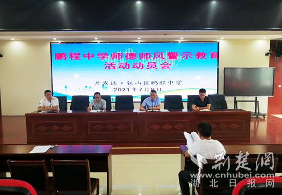 7月9日上午,黃石開發(fā)區(qū)·鐵山區(qū)鵬程中學(xué)在報告廳召開了師德師風(fēng)警示教育活動動員會。會上傳達(dá)了上級部門有關(guān)文件精神,學(xué)習(xí)了典型案例,全體教師簽訂《鵬程中學(xué)師德師風(fēng)承諾書》。會議由黨支部書記、校長柏建敏主持,全體教師參加了會議。