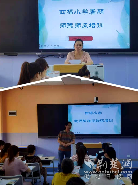 7月6日,四棵小學(xué)組織全體教師開展師德師風(fēng)建設(shè)專項培訓(xùn)活動。校長明正詠、副校長葉丹帶領(lǐng)全體老師深入學(xué)習(xí)了相關(guān)文件,重點強(qiáng)調(diào)了要遵守法律法規(guī)、依法執(zhí)教,認(rèn)真貫徹黨和國家的教育方針,嚴(yán)格遵守《教師法》、《未成年人保護(hù)法》等國家法律法規(guī),扎實開展師德師風(fēng)教育,辦人民滿意的教育。